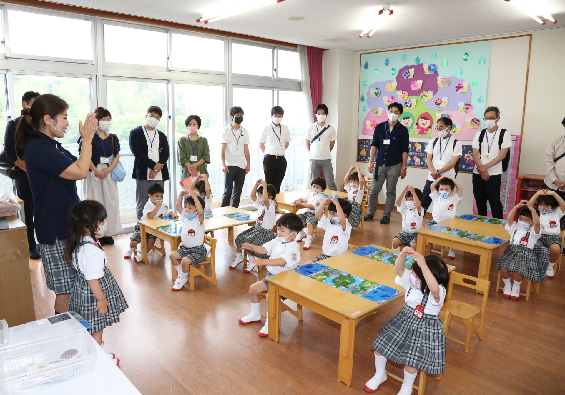 先生と友だちに「さようなら」と挨拶しバスで降園します。