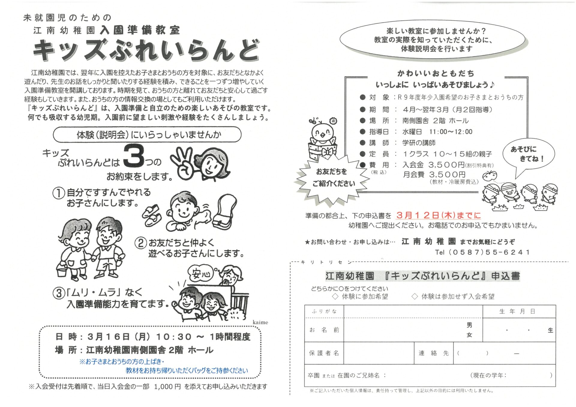 入会の方は江南幼稚園への入園が優先となります。